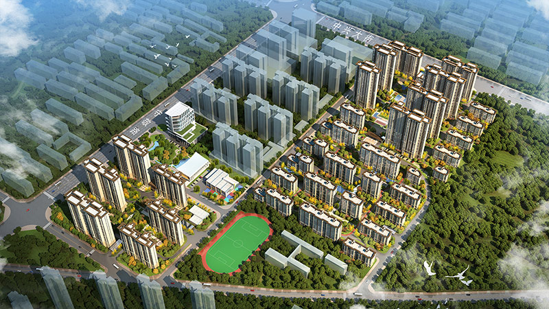 總建筑面積42萬㎡,共建設14棟高層(17F—26F)、21棟洋房(5F—11F)、幼兒園及配套高檔酒店。