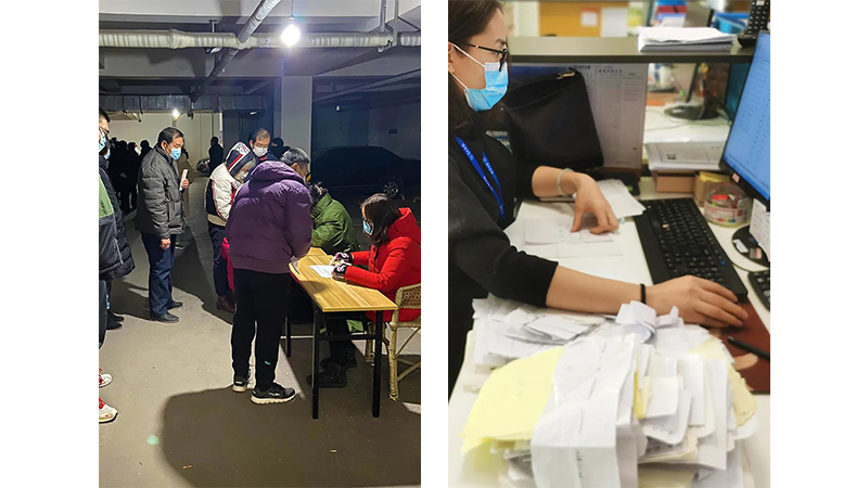◆ 數(shù)名月晟志愿者協(xié)助轄屬社區(qū)進(jìn)行全員核酸檢測和信息錄入等工作。