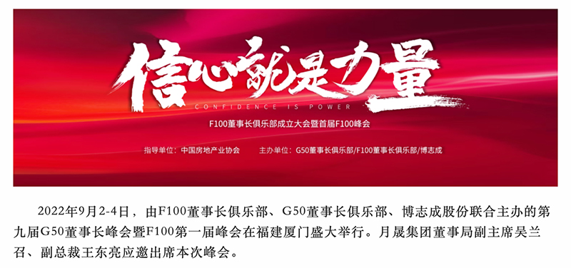 月晟集團出席【博志成F100董事長俱樂部成立大會暨首屆F100峰會】